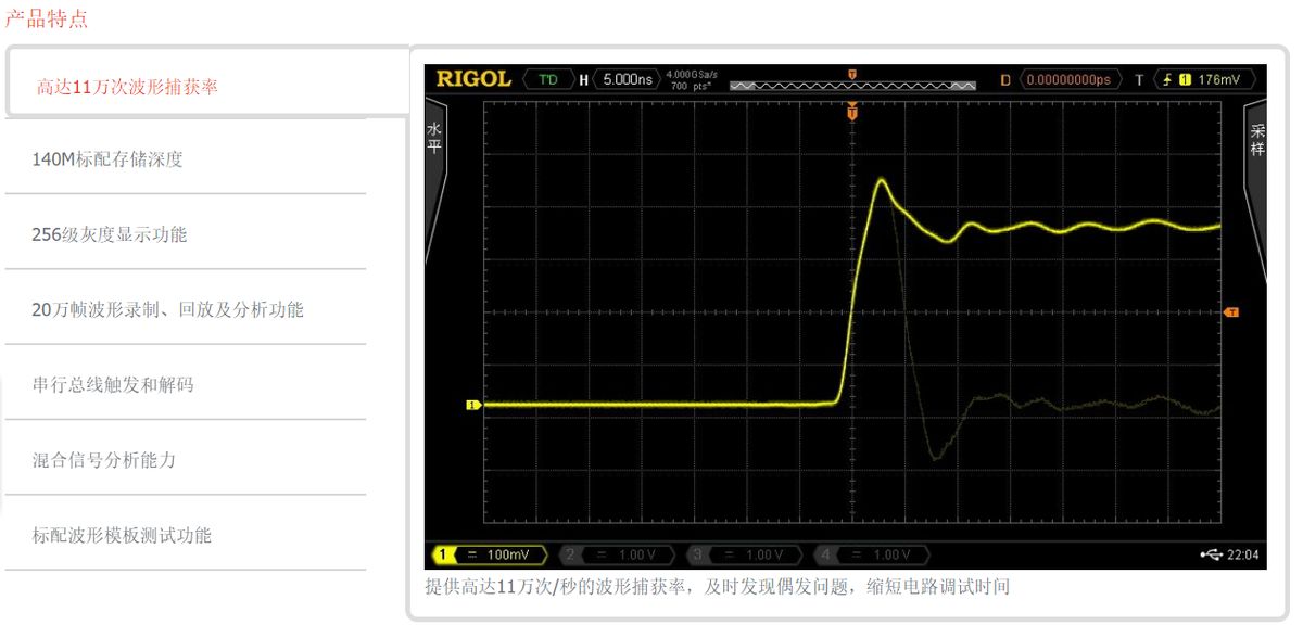 MSO/DS4000系列數(shù)字示波器帶寬100MHz ~ 500MHz,采樣率高達4GSa/s,是同時兼具深存儲深度和高波形捕獲率的高性能數(shù)字示波器。