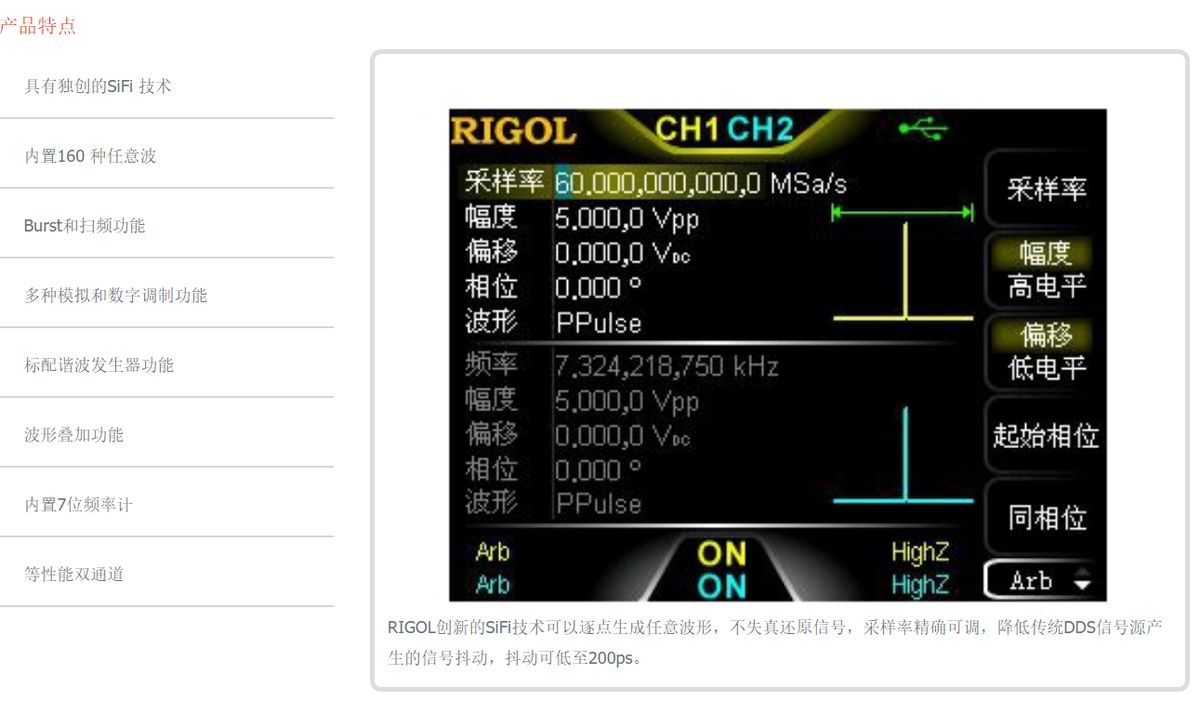 包括函數(shù)發(fā)生器、任意波形發(fā)生器、噪聲發(fā)生器、脈沖發(fā)生器、諧波發(fā)生器、模擬/數(shù)字調(diào)制器和計(jì)數(shù)器。