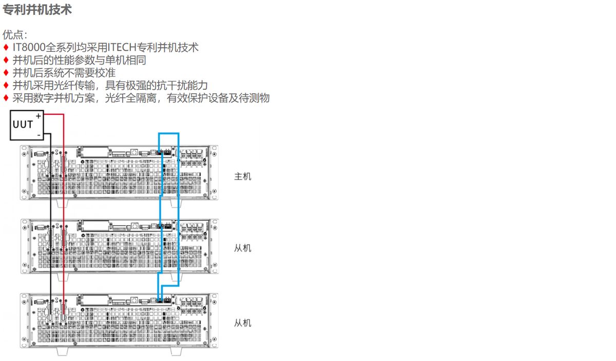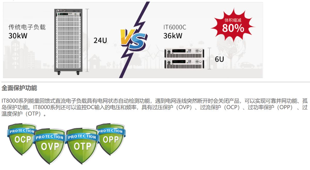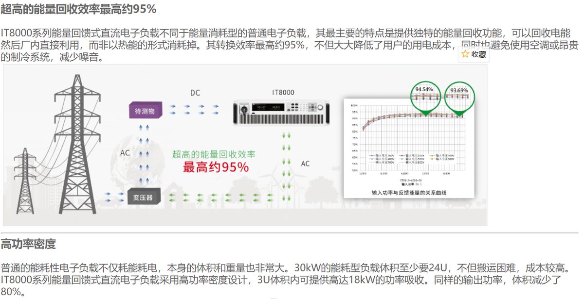 IT8000系列是一款緊湊型大功率能量回饋式直流電子負載,既能模擬各種負載特性,又能將電能無污染的回饋電網(wǎng),不但為用戶節(jié)省了用電和散熱成本,同時也符合節(jié)能環(huán)保的需求。采用模塊化高功率密度設計,3U體積內(nèi)可提供高達18kW的功率吸收,通過主從并聯(lián)、主動均流,可將功率擴展至1.152MW,特別適用于大功率電源、蓄電池、光伏電池、電動汽車、儲能系統(tǒng)等測試領域。